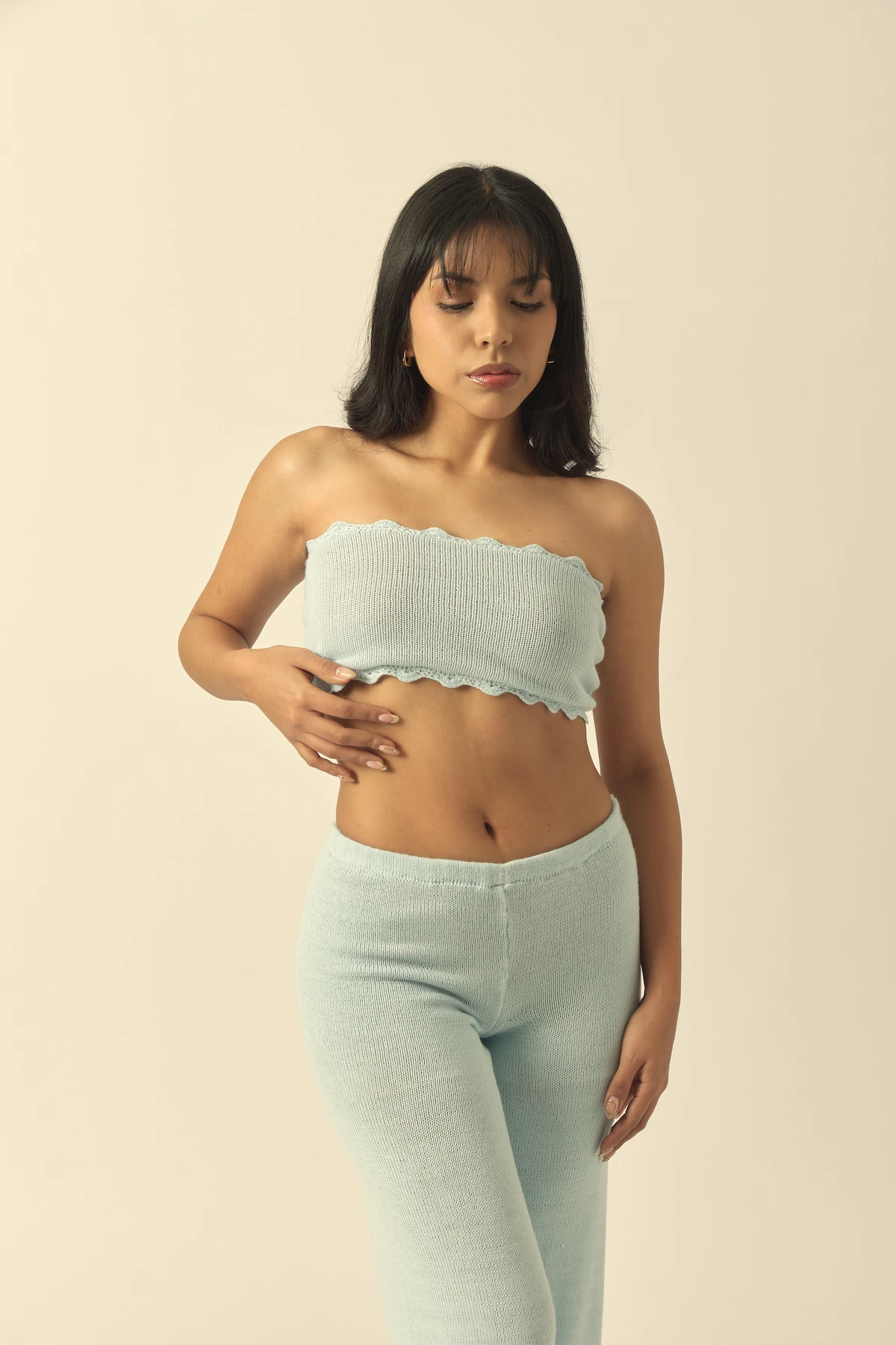 tejido y con los mismos detalles a crochet, regualable y con dos estilos de uso en estilo Halter y estilo top.